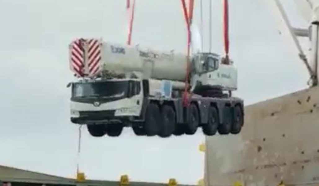 [VÍDEO] Caminhão avaliado em 20 milhões de reais cai de guindaste e imagens são impressionantes