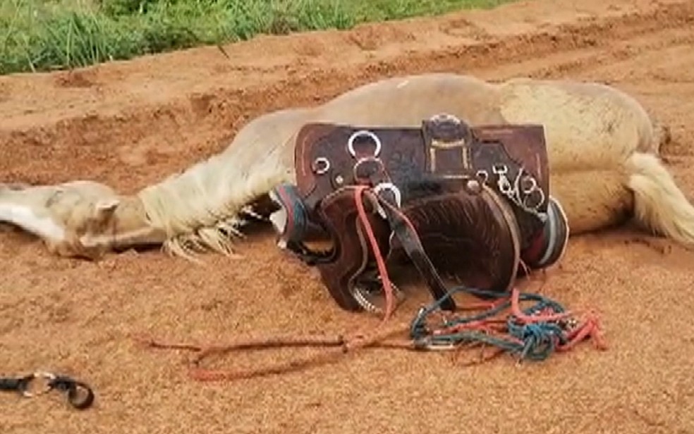 Segundo o pai, a égua chegou a cair por cima do menino por causa do impacto do raio e o menino machucou a lateral do corpo
