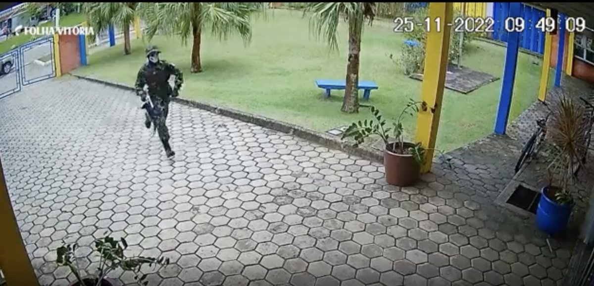 Segundo a Polícia Militar, o homem invadiu a escola iniciando o tirot€io com uma pi,stola