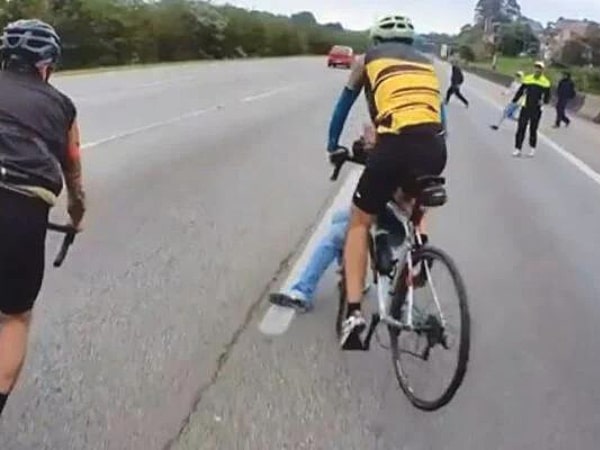 [VÍDEO] Gangue derruba ciclista em rodovia e rouba bike de R$ 15 mil