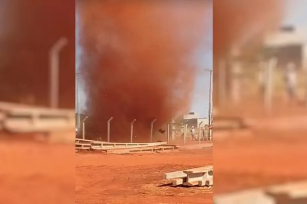 [ VÍDEO] Trabalhadores fogem de redemoinho de poeira gigante em GO