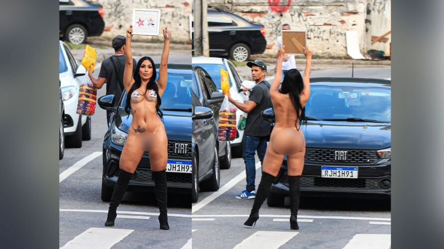 Sem roupa, mulher faz protesto em apoio a Lula e para trânsito no Rio de Janeiro