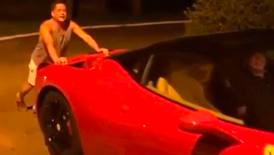 Cantor famoso empurra carro de luxo após ficar sem combustível e posta foto na web: “Na banguela”