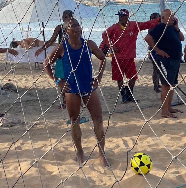 Senador aparece de surpresa em quadra de futevôlei na praia de Ponta Negra. Em rede social, baixinho registra descida de tirolesa em lagoa no litoral Norte potiguar