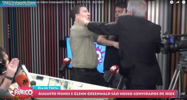 Famoso jornalista da Jovem Pan agride Glenn Greenwald após ser chamado de 'covarde' ao vivo; Assista