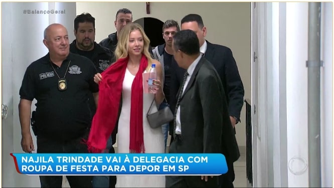 Najila Trindade vai à delegacia depor com roupa irônica e provoca delegada