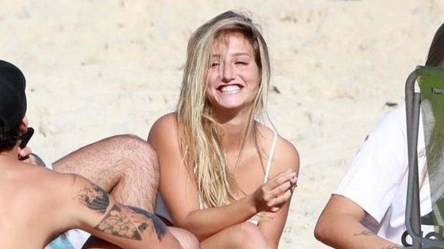 Atriz da Globo é flagrada fumando na praia com amigos e assessoria esclarece: