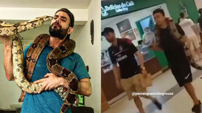 Homem passeia com jiboia de quase 3 metros em shopping e chama atenção nas redes sociais