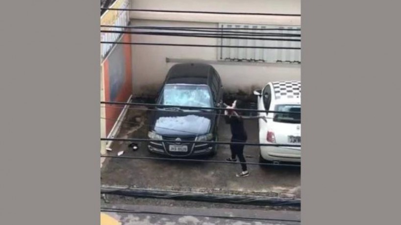 Aos gritos de 'Zé piquinha', mulher quebra carro após suposta traição; veja vídeo