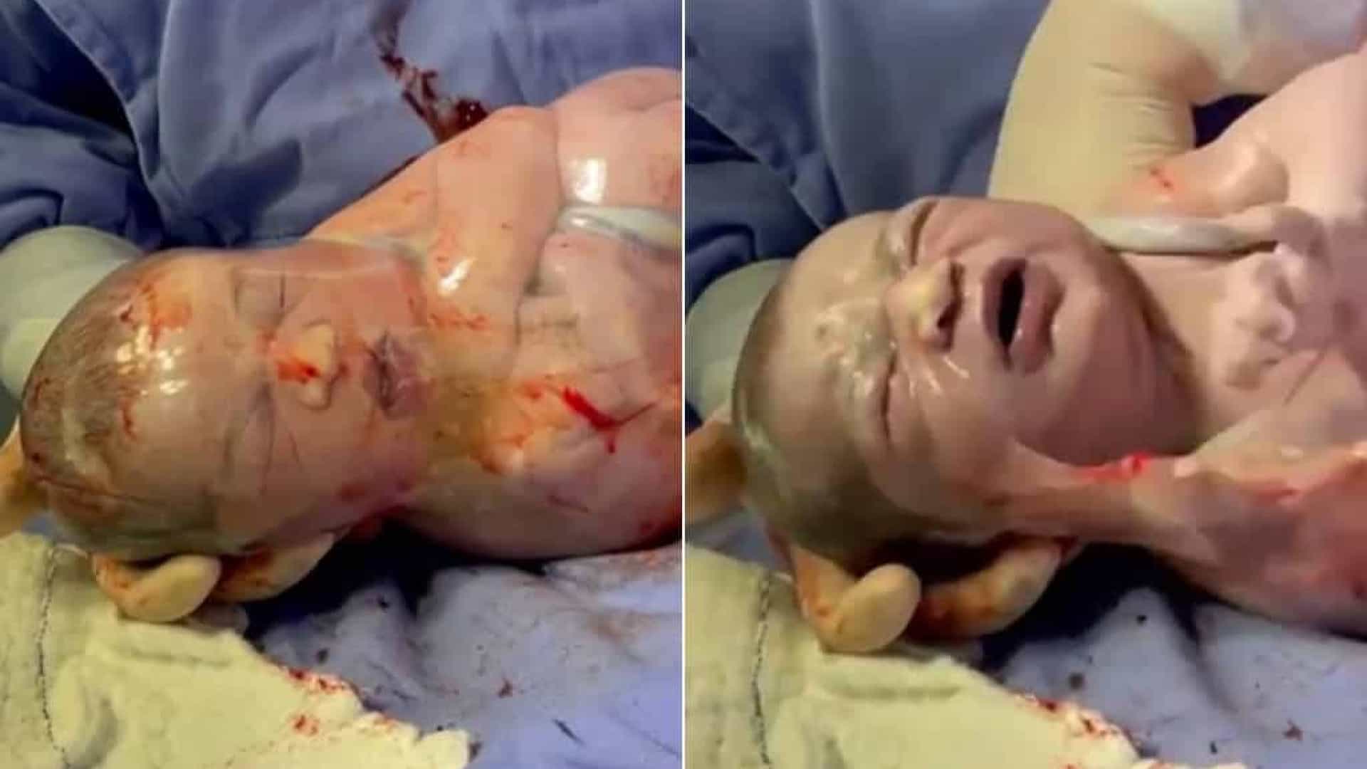 Bebê nasce empelicado e vídeo de médico rompendo bolsa viraliza; assista