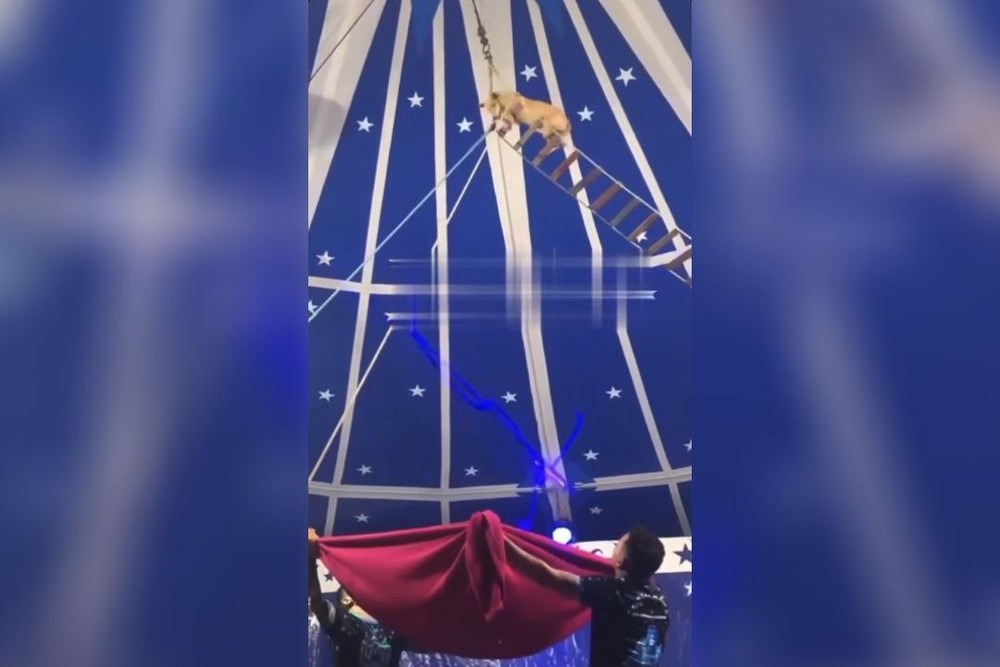 Cachorro sobe em escada de corda e pula do alto em apresentação de circo no Ceará; prática é proibida