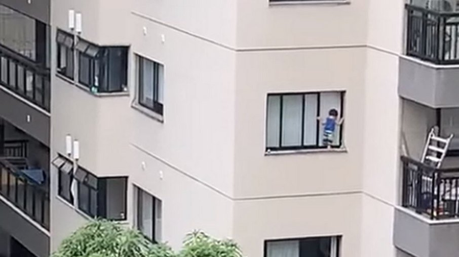 Criança é filmada pendurada em janela de edifício e vídeo é desesperador