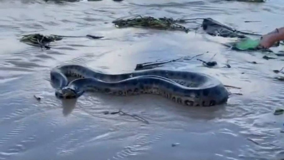 VÍDEO: após chuvas, sucuri de 5 metros é flagrada em praia da Bahia