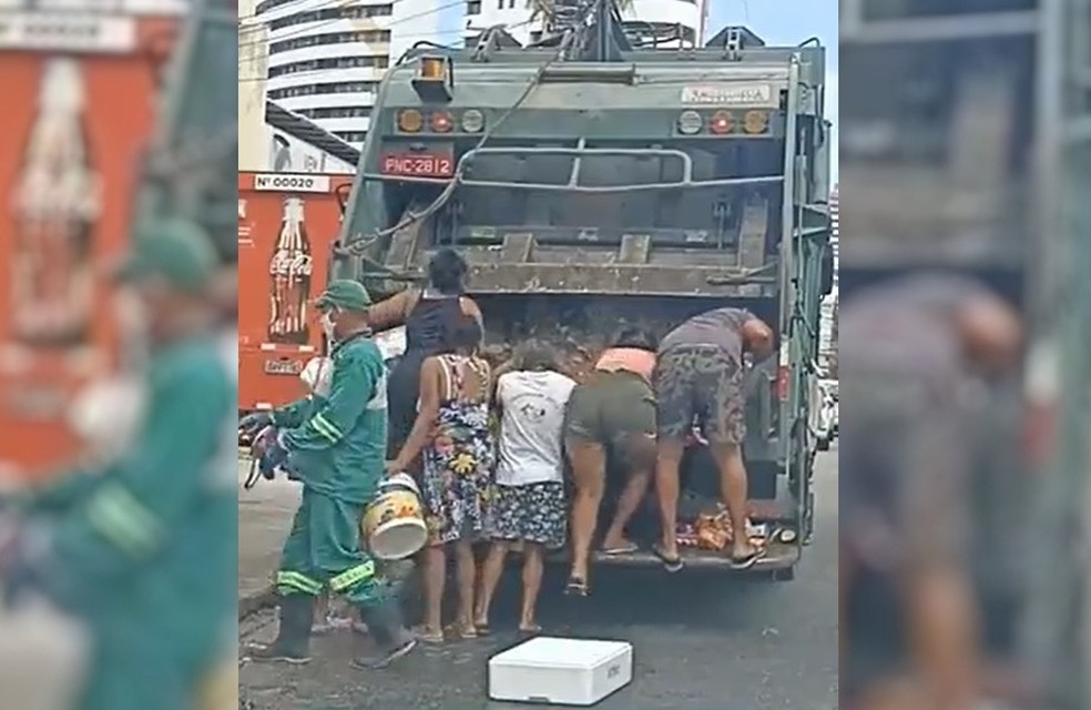 Moradores coletam comida em caminhão de lixo em Fortaleza; vídeo repercute