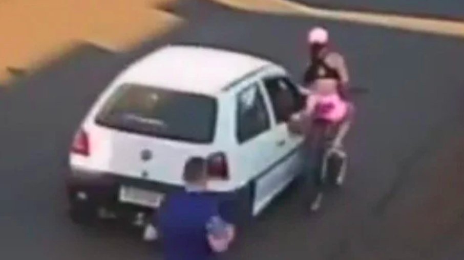Vídeo mostra mulher caindo de bicicleta após homem colocar mão para fora de veículo e apalpá-la