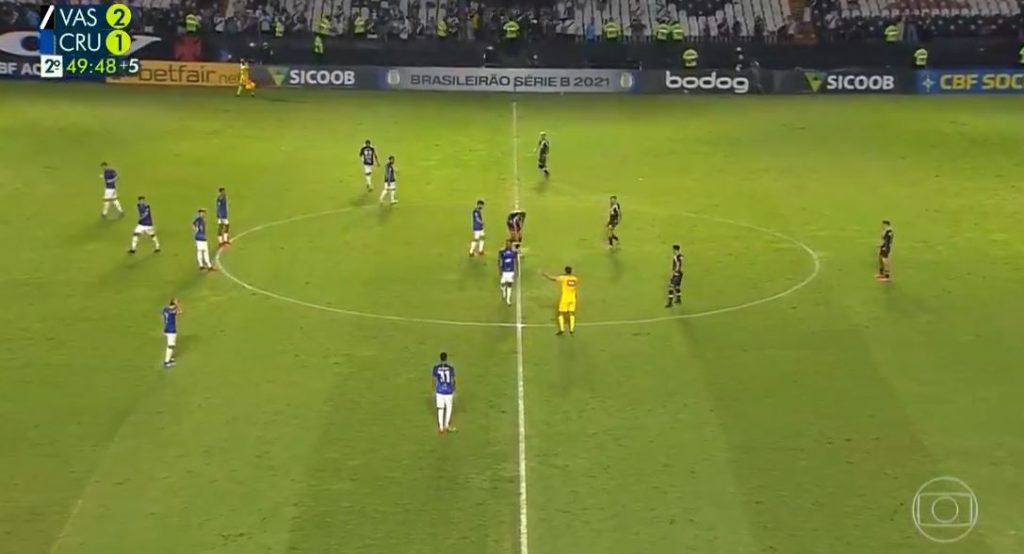 Na sequência, aos 49 minutos do segundo tempo, a equipe celeste conseguiu um escanteio