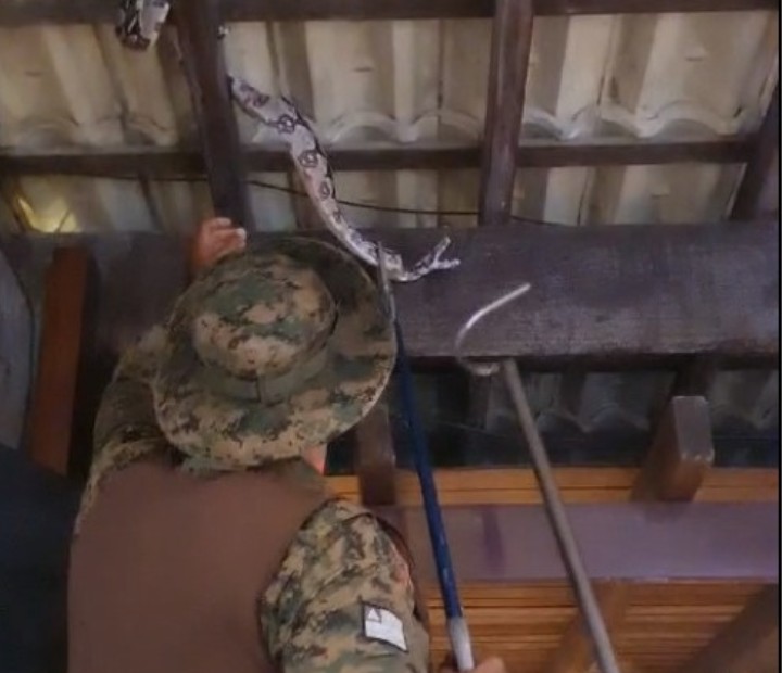 Os agentes receberam a denúncia de que havia uma cobra no telhado do restaurante