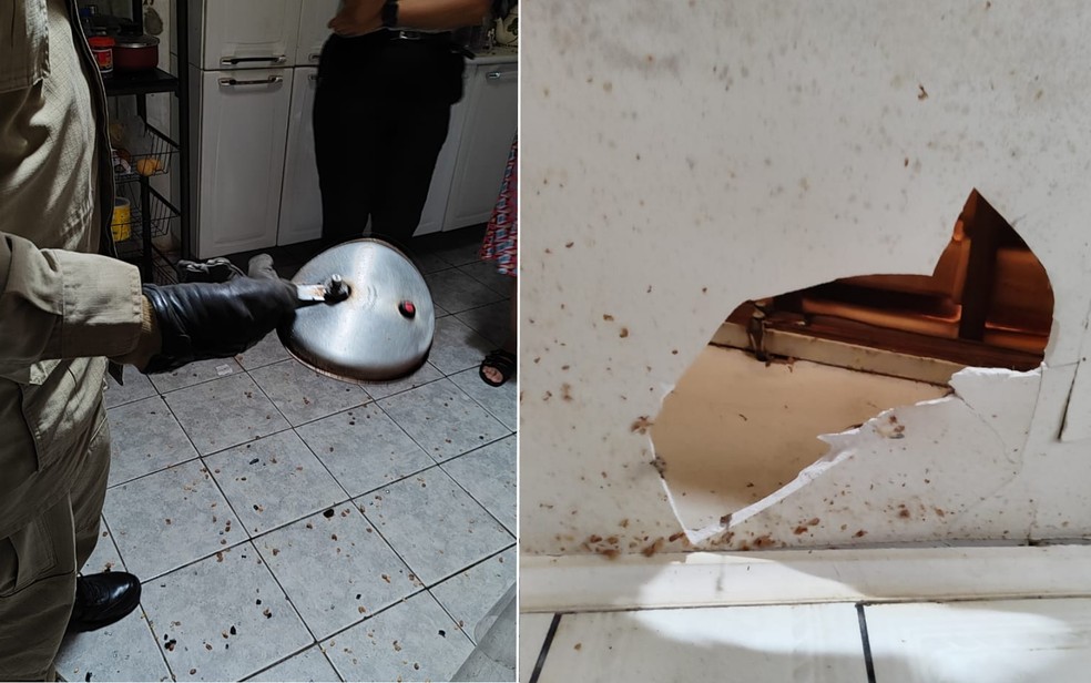 Panela de pressão explode, destrói fogão e vai parar em teto de casa