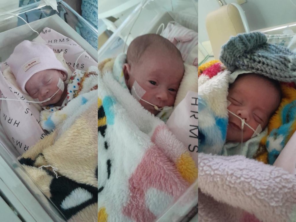 Gabriel, Maitê e Eloá nasceram de 32 semanas no dia 15 de maio e seguem internados no Hospital Regional de Mato Grosso do Sul (HR-MS).