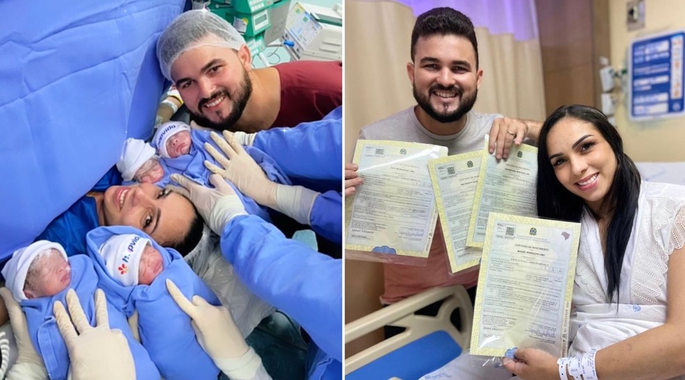 'Em vez de um fazer tratamento ou qualquer exame complementar, terei agora que arrumar o quarto de bebê', relata a mãe. As quatro crianças serão irmãs de Ana Marjorie, de 3 anos, primeira filha do casal.