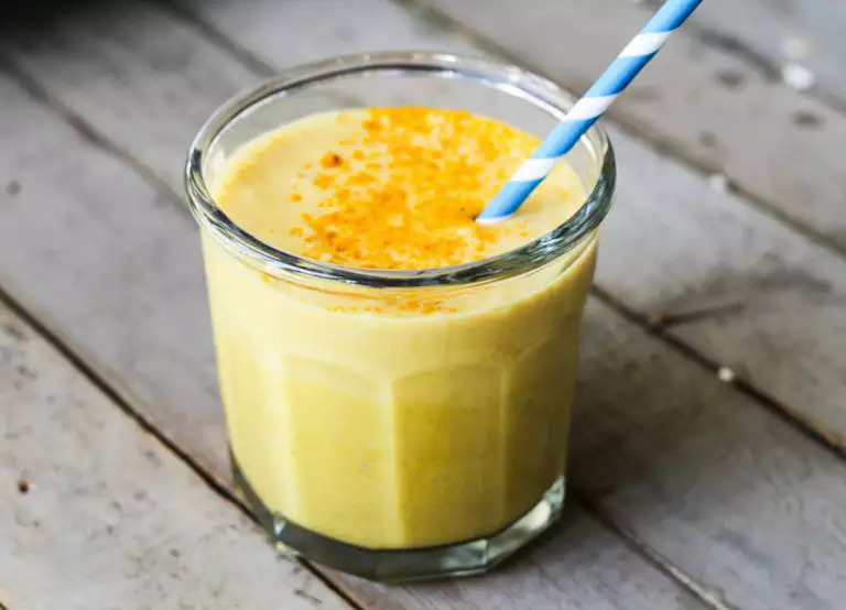 Esta bebida de banana e açafrão tem alto poder de desintoxicação, além de forte efeito relaxante.
