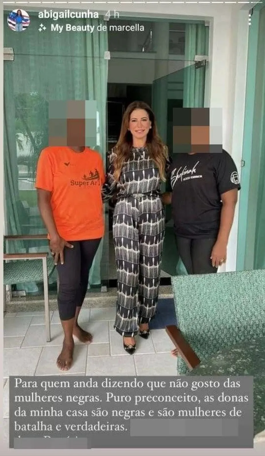 “Para quem anda dizendo que não gosto das mulheres negras. Puro preconceito, as donas da minha casa são negras e são mulheres de batalha e verdadeiras”, escreveu Abigail junto a foto em que está no meio de suas funcionárias.